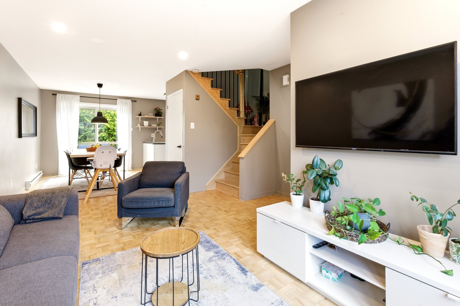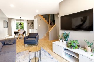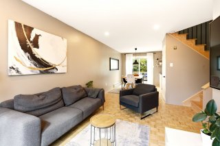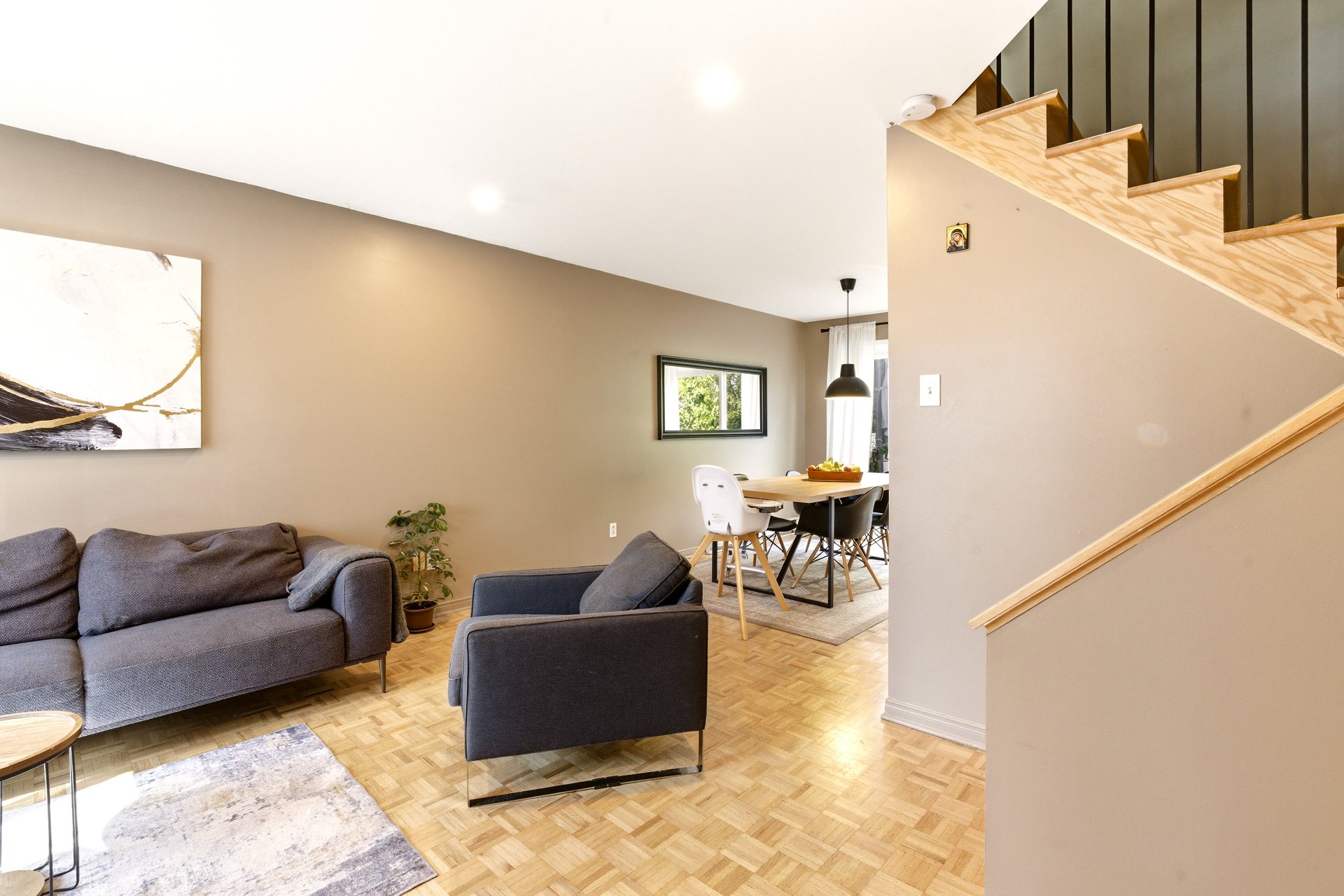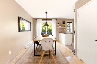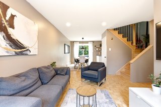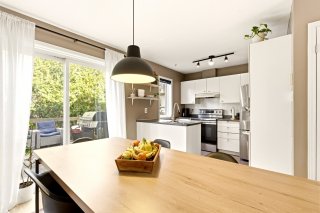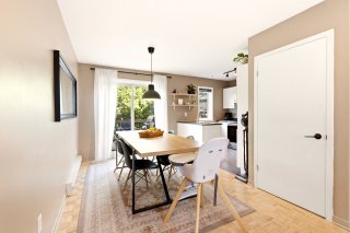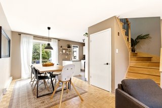 Jolie maison de ville située sur une rue privée, à distance de marche des commodités (Place Fabreville) et à proximité des grands axes routiers. Elle offre de belles pièces lumineuses, des planchers en parqueterie ainsi qu'un élégant escalier en chêne. Vous y trouverez deux chambres à l'étage ainsi qu'une troisième chambre aménagée au sous-sol. Deux espaces de stationnement complètent cette propriété.Les frais de copropriété de 720 $/année incluent le déneigement et le nettoyage de la rue privée ainsi que l'entretien de l'espace vert (petit parc).À voir absolument ! Bonne visite !