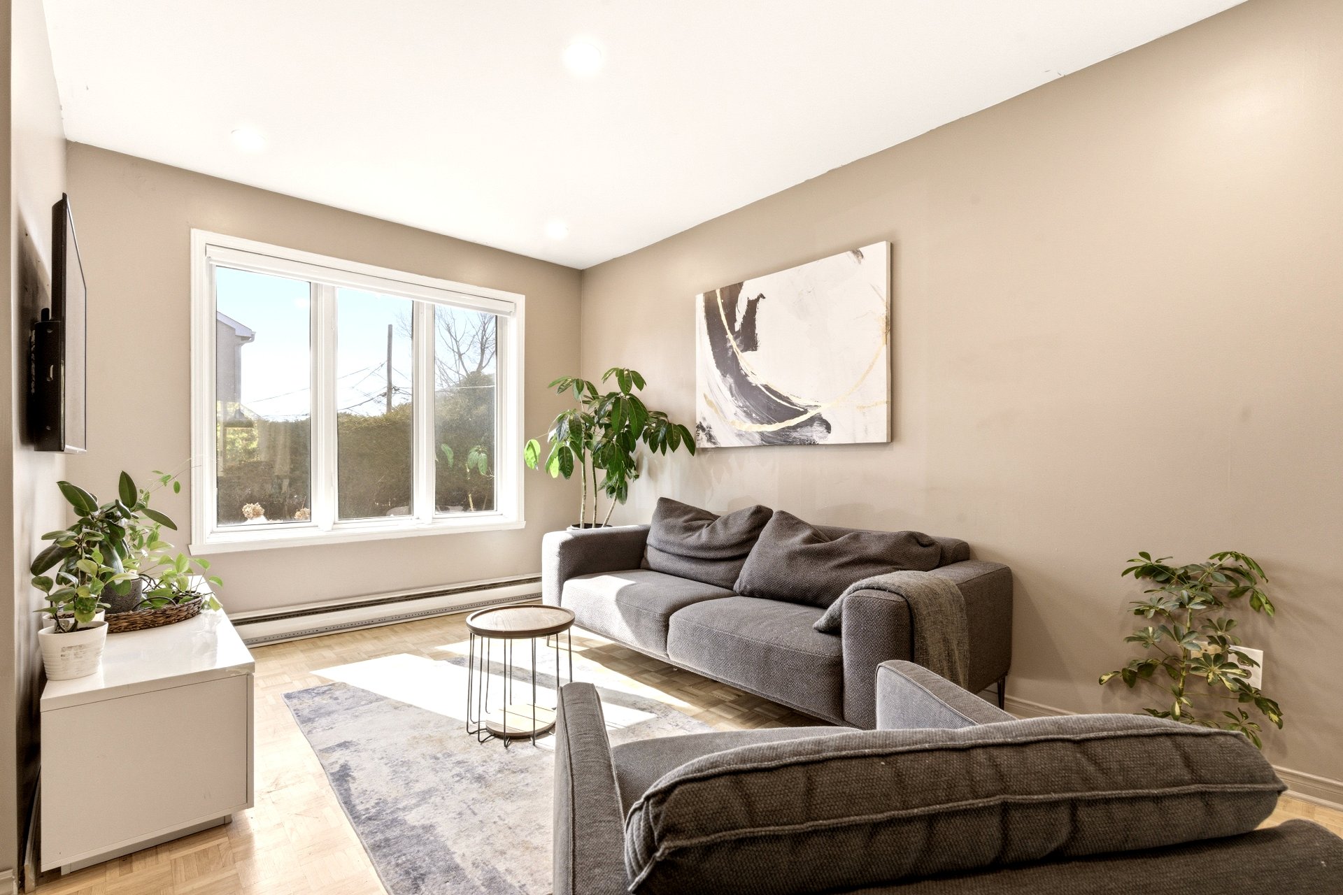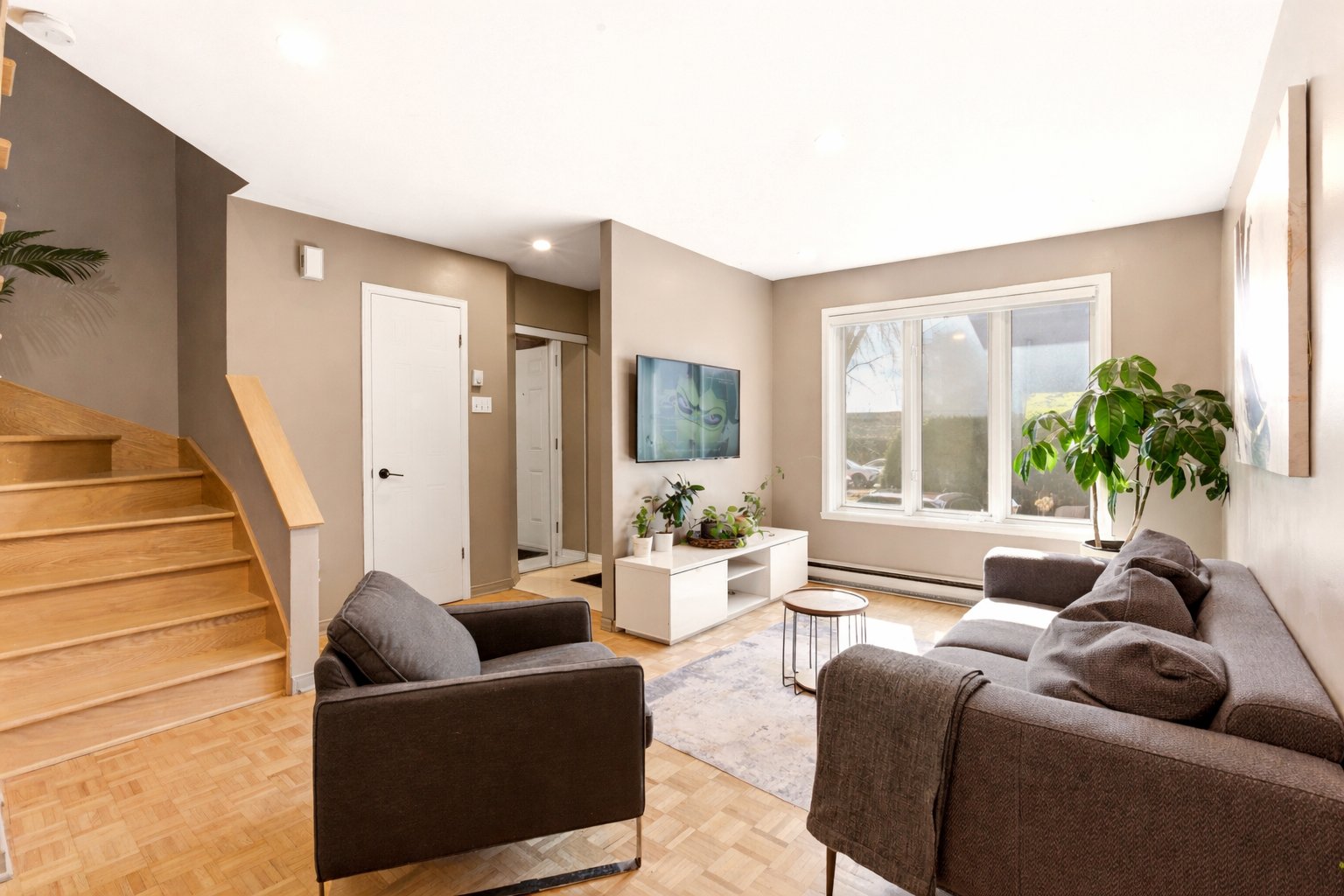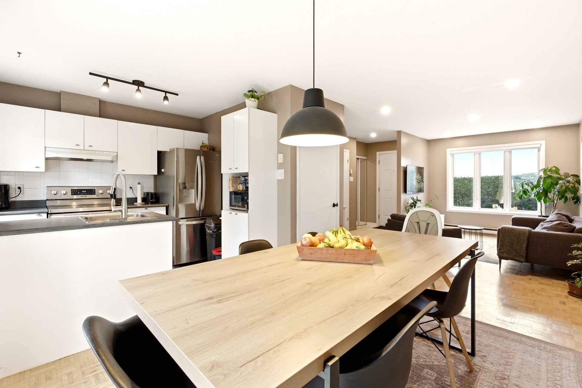 Jolie maison de ville située sur une rue privée, à distance de marche des commodités (Place Fabreville) et à proximité des grands axes routiers. Elle offre de belles pièces lumineuses, des planchers en parqueterie ainsi qu'un élégant escalier en chêne. Vous y trouverez deux chambres à l'étage ainsi qu'une troisième chambre aménagée au sous-sol. Deux espaces de stationnement complètent cette propriété.Les frais de copropriété de 720 $/année incluent le déneigement et le nettoyage de la rue privée ainsi que l'entretien de l'espace vert (petit parc).À voir absolument ! Bonne visite !